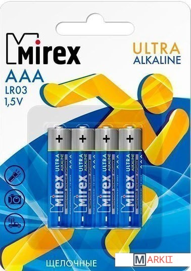 Markit » Батарейки, аккумуляторы, зарядные » Батарейка Mirex Ultra Alkaline AAA 4 шт LR03-E4