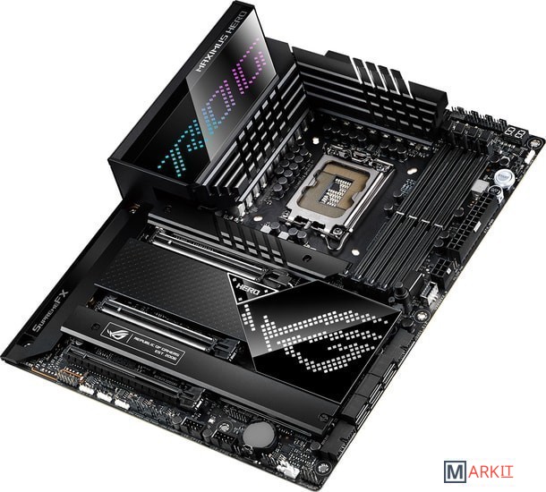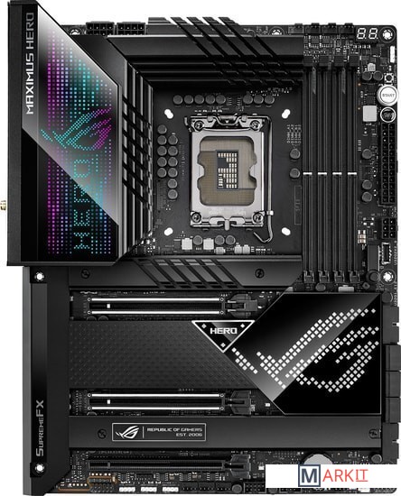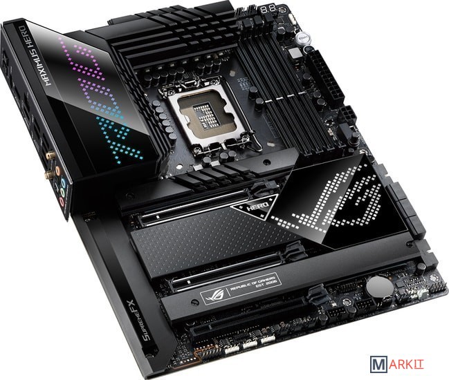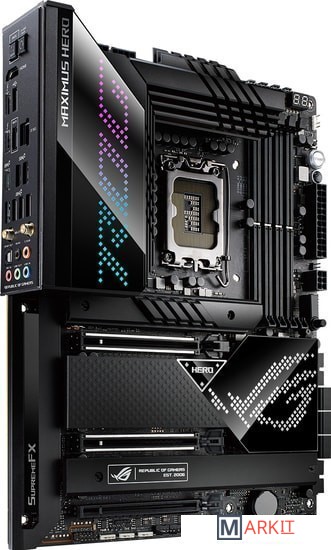 Материнская плата на базе чипсета Intel Z690: форм-фактор ATX, 20+1 силовой модуль, DDR5, пять слотов M.2, фронтальный интерфейс USB 3.2 Gen2x2, два порта Thunderbolt 4, PCIe 5.0, Wi-Fi 6E, синхронизируемая подсветка AuraРазъем LGA 1700 для процессоров Intel Core 12-го поколения, Pentium Gold и CeleronЭксклюзивные интеллектуальные технологии: разгона, охлаждения, сетевого подключения и двухстороннего шумоподавленияНовые процессоры Intel под кодовым названием Alder Lake-S создают повышенную нагрузку на систему питания, но плата ROG Maximus Z690 Hero к этому готова: продуманная схема стабилизатора напряжения, рассчитанная на ток до 90 А, премиальная элементная база и оптимизированная разводка слотов памяти гарантируют стабильную работу компьютера как в играх, так и в любых других приложениях.Мощная система питания: 20+1 силовой модуль (90 А каждый), разъемы питания ProCool II, сплавные дроссели Microfine, металлические конденсаторыОптимизированное охлаждение: большие радиаторы системы питания с интегрированным алюминиевым кожухом интерфейсной панели, термопрокладки с высокой теплопроводностью, три радиатора M.2 с двумя усилительными пластинами, разъемы для подключения СВО, радиаторы на адаптере ROG Hyper M.2Скоростное сетевое подключение: встроенный беспроводной модуль Wi-Fi 6E, порт 2.5G Ethernet (контроллер Intel, с электрозащитой LANGuard)Передовые интерфейсы: PCIe 5.0, два слота M.2 с режимом PCIe 4.0, адаптер ROG Hyper M.2 с поддержкой режима PCIe 5.0, фронтальный порт USB 3.2 Gen2x2, два порта Thunderbolt 4 (USB-C)Великолепный звук: аудиокодек ROG SupremeFX ALC4082 и цифроаналоговый преобразователь ESS ES9018Q2CПолноцветная подсветка Aura: встроенная подсветка и разъемы для подключения внешней, технология синхронизации Aura SyncДля энтузиастов: предустановленная корпусная заглушка, кнопка Q-Release, удобное обновление прошивки (BIOS FlashBack), диагностический индикатор Q-Code, перепрограммируемая кнопка перезагрузки (FlexKey), Q-Connector, защелки Q-Latch для слотов M.2, адаптер ROG Hyper M.2, технология SafeSlot, кронштейн для видеокартыДополнительное программное обеспечение: 1-годичная подписка на AIDA64 Extreme и встроенная в интерфейс UEFI BIOS утилита MemTest86