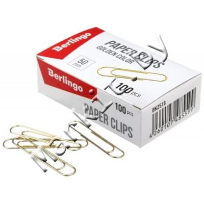Скрепки Berlingo, 50 мм, 100 шт., округлые, золотистые Код: 33126